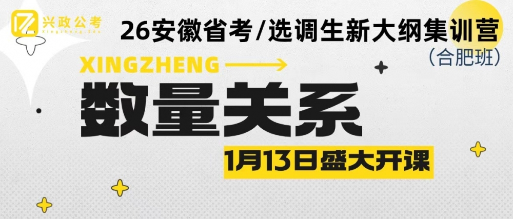 备战26安徽省考、选调生笔试,数量关系还在靠蒙猜碰运气?题干里理不清解题逻辑、公式定理记混用错反复丢分、双考模式下答题速度迟迟上不来?1月13日,兴政公考数量关系专项合肥班重磅开课,带你精准适配双考命题规律,一举突破数量关系备考瓶颈!