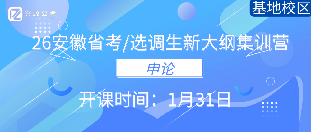 备战26安徽省考、选调生笔试,申论还在因立意不准、逻辑混乱、表达干瘪频频失分?材料阅读抓不住核心观点、公文写作格式频频出错、大作文立意与论证始终卡壳?双考模式下,申论板块的得分率始终上不去?1月31日,兴政公考申论专项集训营(基地校区)重磅开课,带你精准适配双考命题规律,一举突破申论备考瓶颈!